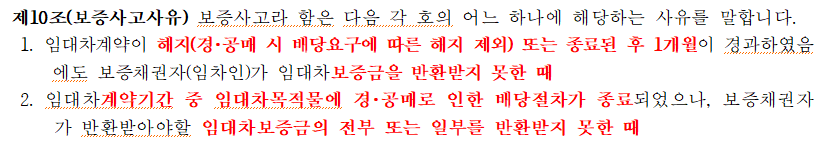 임차인은 보증사고 유형에 따라 보증기관에 채무의 이행(보증금 주세요)을 청구해야 하는데요.